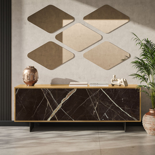 Fornitore: Progetto Design International Madia Aurea 3 ante - T8151G#00170010ST085 MADIA AUREA 3 ANTE - STRUTTURA ROVERE NATURALE, GRIGIO CARBONE, ANTA VETRO STAMPATO CALACATTA BLACK 214x47x76 cmPrezzo scontato €1.699,99Prezzo normale €4.229,00